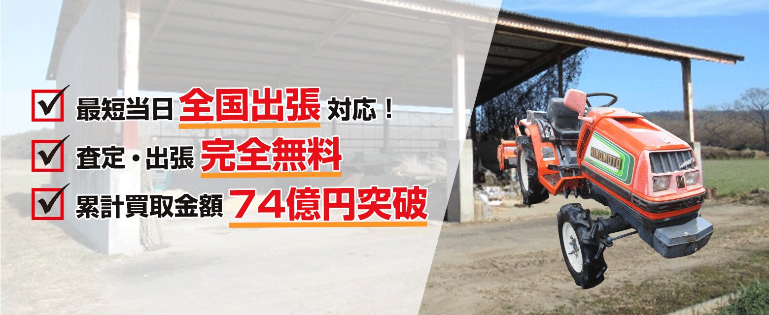 農機具王でも、これまでに数多くの日ノ本製農機具を高価買取してきた実績があります。特に旧型トラクターについては、専門スタッフが機種や市場動向を熟知しており、適正価格での査定をお約束いたします。全国34店舗を展開し、最短当日の出張対応が可能。もちろん、出張費・査定料は完全無料です。24時間対応のフリーダイヤルもございますので、いつでもお気軽にご連絡ください。
